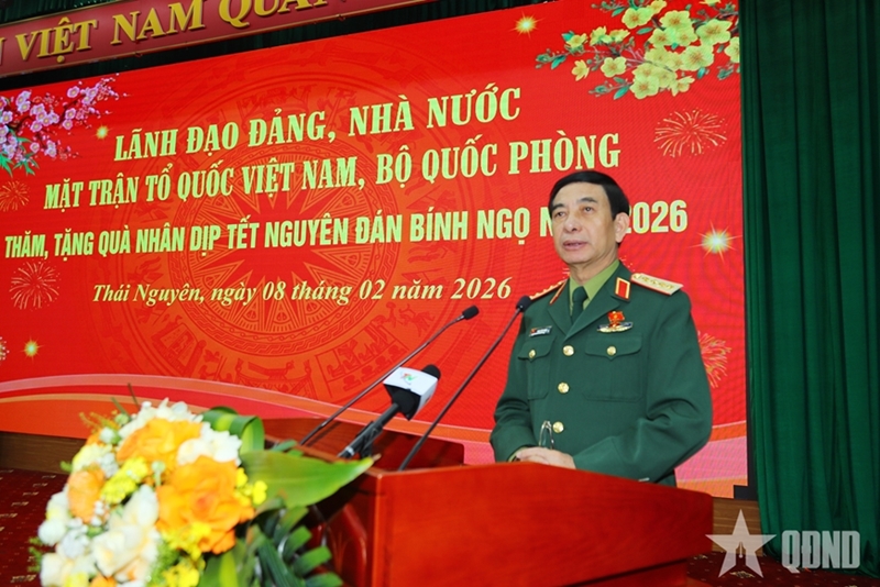 *2月8日上午,潘文江大将代表党、国家和越南祖国阵线领导人,访问了太原省,并向当地人民赠送2026年新春礼物。