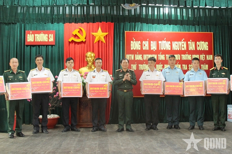 阮新疆大将和工作团对祖国前线每天发生的积极变化表示欣喜。工作团亲切询问了官兵和人民的健康和生活状况,倾听了他们的心思和愿望,分担困难,并鼓舞了在风头浪尖执行任务的部队精神。阮新疆大将和工作团高度评价各岛屿和海上高脚屋官兵积极主动、自力自强、克服困难、创新的精神,重申中央军委、国防部和全国军民始终对履行保卫祖国海洋和岛屿主权神圣任务的部队充满信心。阮新疆大将希望官兵继续发扬团结友爱的传统,克服一切困难,出色完成各项任务,同时肯定党、国家、中央军委、国防部始终特别关心长沙特区和DK1海上高脚屋,并将竭尽全力为它们提供最好的服务。