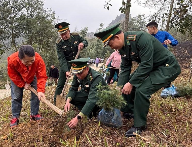 启动仪式结束后,单位官兵和当地政府在单位营区内及周边村庄开展新植和补植工作,共种植了500多棵树,包括高盆樱桃树、桃树、梨树和杉木树等。