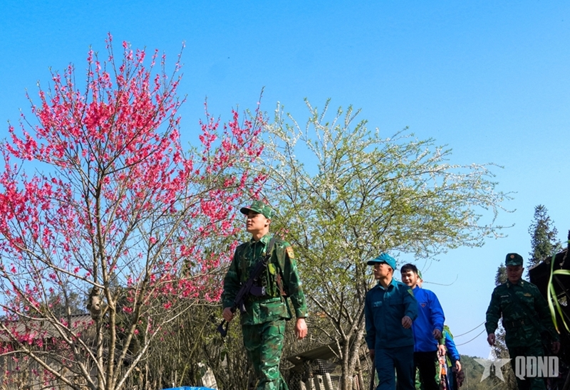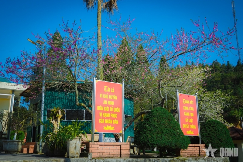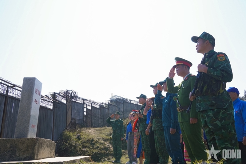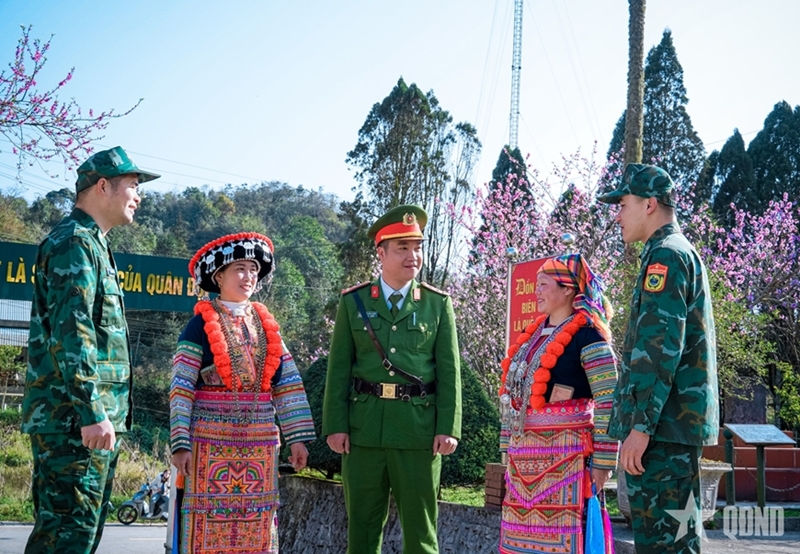 在宣光省边防部队上蓬口岸边防屯院内,粉桃枝头随风轻摇,为规范有序的营区生活平添几分春意。“纪律是军队的力量”标语格外醒目,官兵们整肃军容、逐一检查装备,整装待发。从宁静的营区出发,巡逻队伍向各个方向展开,足迹延伸至嫩绿草坡,沿着边境围栏前行,直抵一座座象征国家主权的界碑。