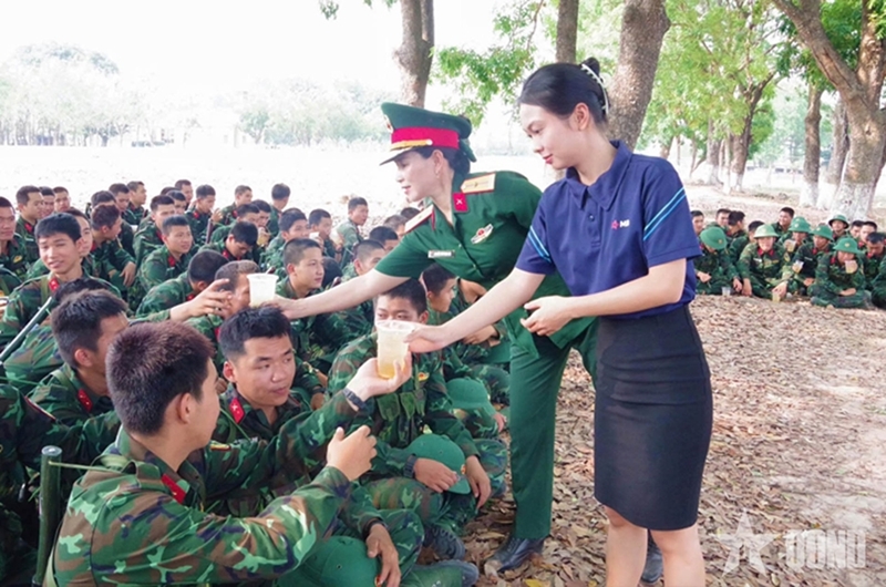 在接收新兵后,单位与地方党委、政府及各团体组织密切配合,开展多项陪伴新兵的活动。5师的妇女会干部、青年团员以及缔结友好关系的单位代表亲自来到营区慰问新兵,赠送生活必需品、日用品及书报,丰富官兵精神生活。其中,最为突出的活动是在高强度训练、炎热天气条件下,到训练场为新兵及时提供饮用水、水果和清凉饮品。一壶壶清凉的饮用水、柠檬水、解暑茶以及新鲜水果,在休息间隙送到战士们手中,帮助他们迅速恢复体力,保障身体健康,继续投身训练。