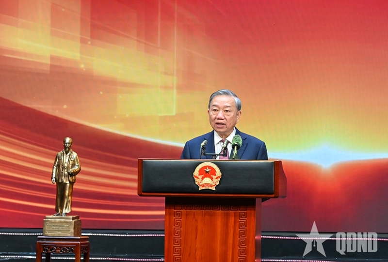 越共中央总书记、国家主席苏林在仪式上发表讲话(图片来源:人民军队报) |