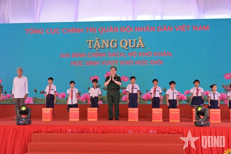 阮仲义大将在仪式上发表讲话时强调,该工程具有切实意义,体现党、国家、军队对教育事业和当地人民生活的关怀,同时继续培育军队与人民之间的团结与血肉相连关系。在近几届党代会中,我党已将教育培训与科学技术确定为首要国策。关于教育培训的大主张、政策已出台,尤其是中央政治局关于教育与培训突破性发展的第71号决议,内容深刻、全面且具有变革性。其中,中央军委、国防部一直明确与教育培训部以及全国政治体系一道,积极为教育事业作出贡献,特别是改善困难地区学生的学习条件。