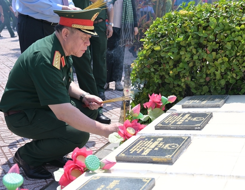 值此之际,阮仲义大将和20兵团领导向当地优抚家庭、贫困户、品学兼优的贫困学生赠送200份慰问品;前往当地烈士陵园、烈士庙、历史遗迹区敬香献花;前往原越共中央书记处书记、原总政治局主任黎文勇大将私邸敬香献花。