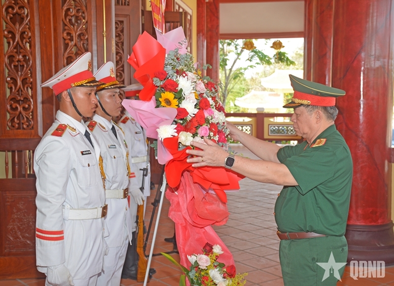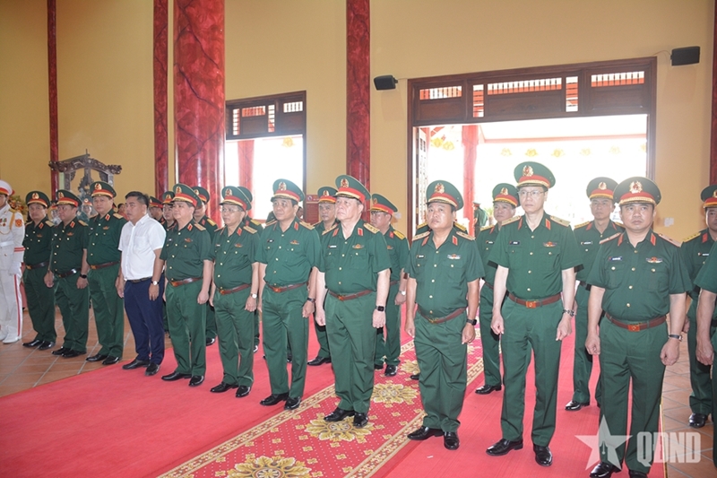 同日,阮仲义大将一行前往萨林战区英雄烈士庙敬香献花。(完)