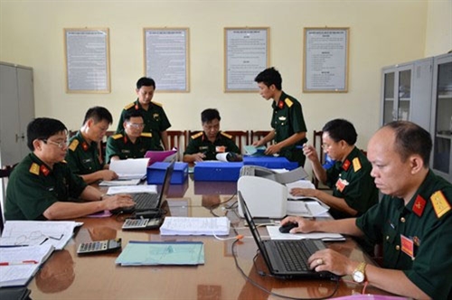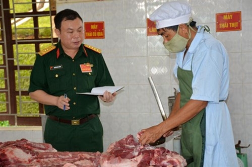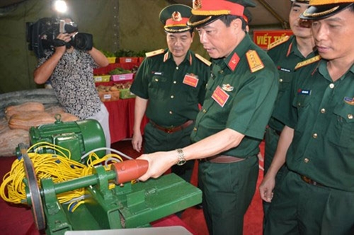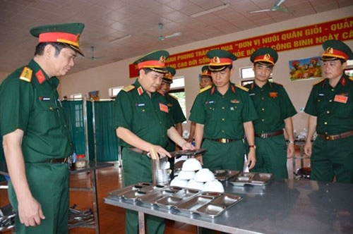 总后勤局军需局局长阮春海少将和其他评审员检查249旅1营厨房工具(图片来源:人民军队报)