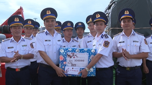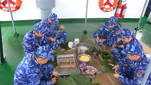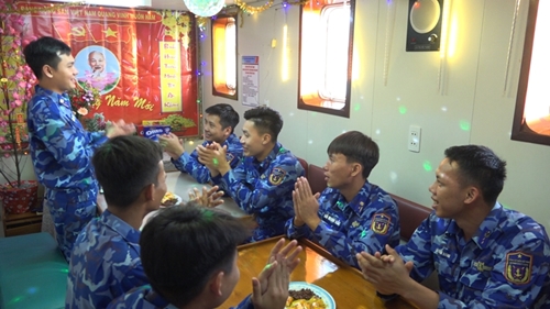 《人民军队报》记者谨向读者介绍越南海警司令部海警第四区CSB 9003号海警船官兵们在海上喜迎春节的组图: