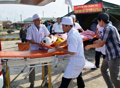 人民军队:广治省边防部队日前与广治省卫生厅联合举行“防灾减灾和海上救护援助工作中的医疗保障”培训班的实兵演习。