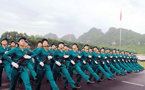 女民兵力量参加游行训练,庆祝越南“八月革命”与9·2国庆70周年纪念日