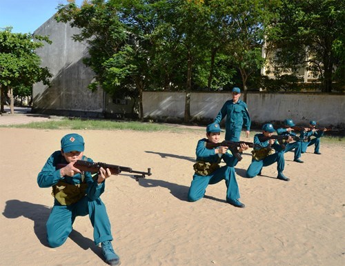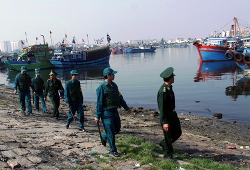 岘港市民兵与边防部队联合训练保卫政治安全和社会治安