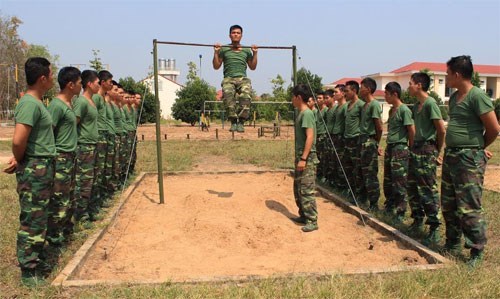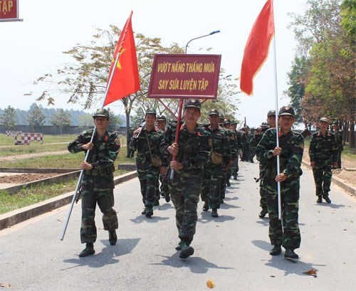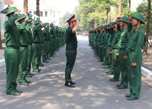 人民军队:为了开展“有效管理,优秀训练,严守军纪”高峰竞赛运动,在训练第一周,胡志明市司令部嘉定团新兵不怕艰苦,顶着风吹日晒埋头训练,决心取得优秀成绩。