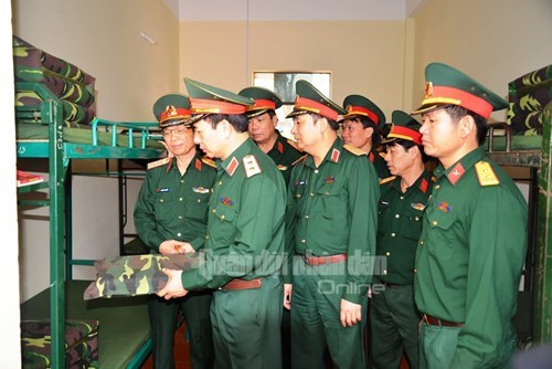 潘文江中将检查316师连级干部工作薄及新兵生活保障工作(图片来源:人民军队报)