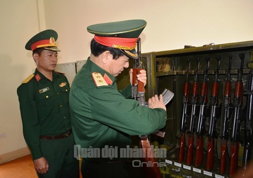 潘文江中将检查316师训练枪(图片来源:人民军队报)