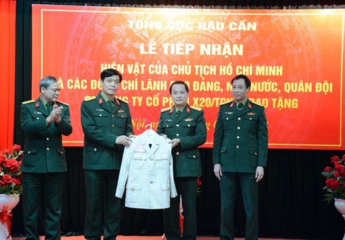 人民军队:1月10日,总后勤局后勤博物馆举行交接仪式,接收由该总局X20股份公司成功复制并捐赠的胡志明主席以及党、国家和军队领导人的衣服。