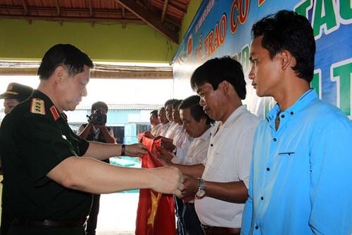 阮仲义上将希望,每次出海捕捞,渔民同胞将携带国旗——国家的自豪和主权象征。看上国旗,渔民们将感到温暖和放心,因为总是有军队官兵和各级别、各部门携手并肩,共同战胜自然灾害,出海谋生,靠海致富,同时肯定和保卫祖国神圣的海洋岛屿主权。