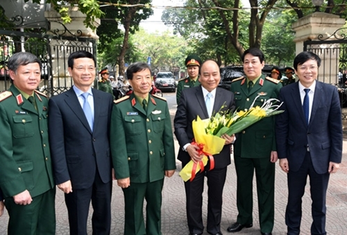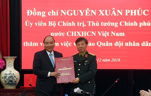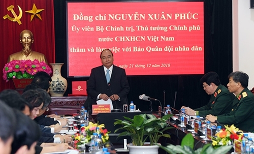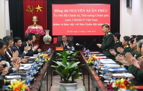 为了庆祝越南人民军成立74周年、总政治局传统日74周年及全民国防日29周年纪念日,12月21日上午,越共中央政治局委员、中央军委常务委员、政府总理阮春福走访了位于河内市潘廷冯路7号的《人民军队报》报社。