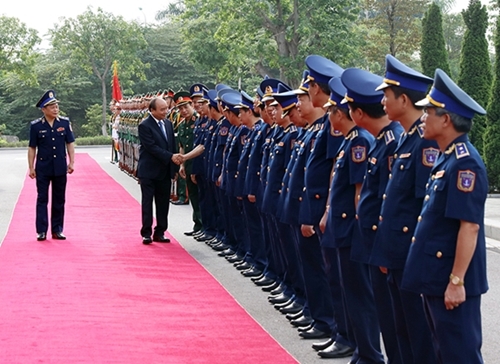 阮春福总理检阅海警司令部仪仗队(图片来源:人民军队报) |