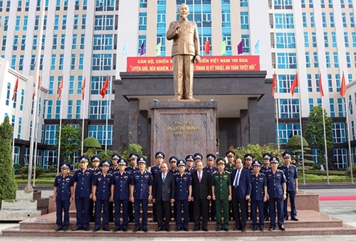 越南政府总理阮春福7月11日莅临越南海警司令部调研。越南政府常务副总理张和平,越南人民军总参谋长、国防部副部长潘文江上将陪同。