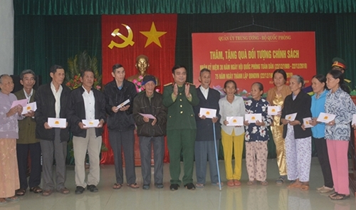工作团已向广平省和广治省越南英雄母亲、人民武装力量英雄、优抚家庭赠送60份礼物。黎詹上将亲切慰问了各位越南英雄母亲、人民武装力量英雄、优抚家庭,并强调:中央军委和国防部对拥军拥属工作、革命功臣家庭、伤病员一直予以特别关心,开展诸多务实活动,同时希望优抚家庭、越南英雄母亲、人民武装力量英雄不断发挥家乡优良传统和胡伯伯部队美好品德,成为青年一代学习效仿的榜样。(黎英秦 报道)