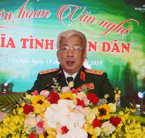 国防部副部长阮志咏上将发表讲话(图片来源:人民军队报) |
