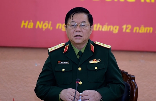 阮仲义上将在会议上发表讲话(图片来源:人民军队报) |