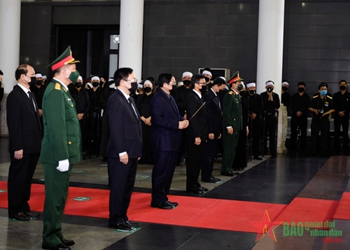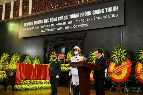 越共中央政治局委员、政府常务副总理、殡葬委员会主任范平明在庄严而感人的气氛中阅读悼词,表彰冯光青大将为光荣的革命事业以及为党、国家和越南人民军建设事业作出的功绩、贡献和奉献。