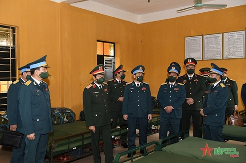 听取280团指挥简要汇报随时准备值班工作和组织部队迎接2022虎年春节情况后,阮新疆上将视察71连,并向官兵送去新春祝福。