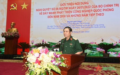 会议上,越共中央委员、中央军委常委、越南人民军总参谋长、国防部副部长阮新疆上将介绍了第8号决议的基本内容;越共中央委员、国防部副部长范怀南上将汇报了政府实施第8号决议的行动计划制定过程;各中央部门和地方代表就有关国防工业发展任务的多项重要问题发表讲话。