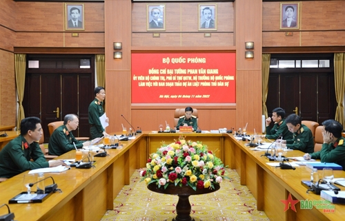 人民军队:11月4日上午,越共中央政治局委员、中央军委副书记、国防部长潘文江大将与《民事 防守法》项目起草委员会举行工作会议。