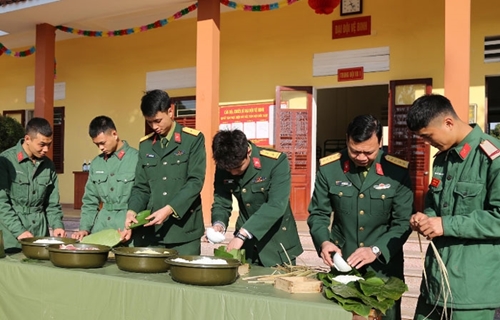 15营干部战士包粽子(图片来源:人民军队报)