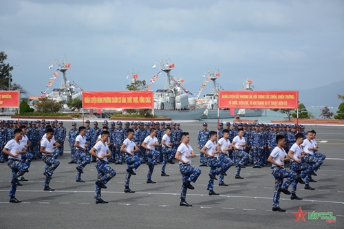 海军第四区162旅开训仪式上的徒手拳术表演。