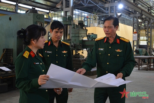 总技术局Z153厂技术助理陈氏芳棰大尉与工厂干部交换意见。