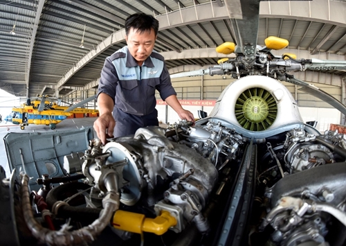 技术人员检查米-172直升机上的雷达系统(图片来源:人民军队报)