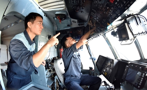 检查米-171直升机驾驶舱内的每个部件(图片来源:人民军队报)