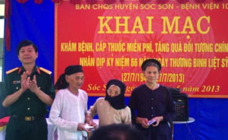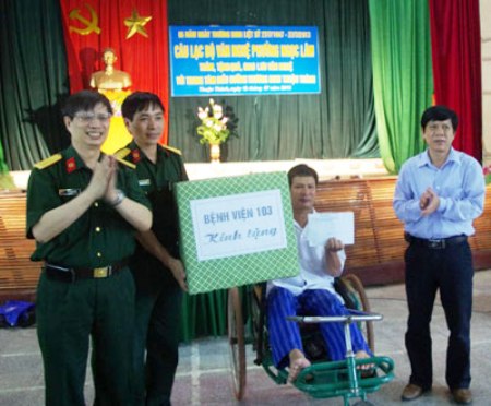 值纪念越南伤残军人烈士日66周年(1947/7/27-2013/7/27)之际,103军医院已组织8个工作小组赴河内、北江、河南等省市的伤残军人疗养中心;免费为在中心接受治疗的伤病员和优抚对象诊病送药与赠送礼物。活动吸引了103军医医院的146干部、医生和医务人员参加。据统计,此次得到免费诊病送药的约3000人次,慰问品总值达3亿越盾。