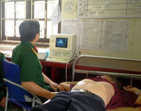 | 103军医院医生给河内市石七县看病(图片来源:人民军队报) |