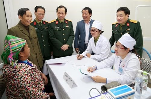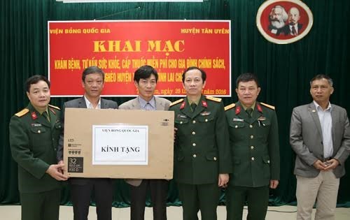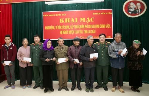 65名干部和医护人员已为1000名优抚对象开展义诊活动。在看病期间,医生为患常见疾病的人看病、发放药品及指引治疗方法;至于重病患者,医生们提供咨询,让病人到中央医院看病。在这次工作期间,工作团已向当地各学校、医疗所、优抚对象赠送电视机、衣服、本子、笔字、书包、棉被、药品以及许多学习用具,这些礼物和药品总额为6亿越盾。