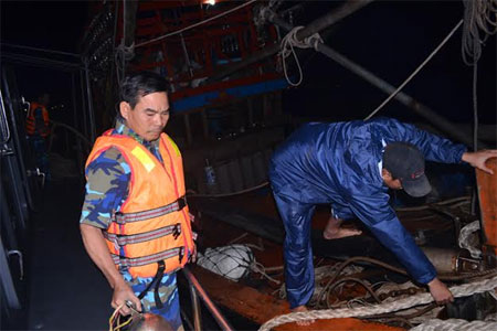 人民军队记者国武报道:经过十二个多小时进行搜寻,1月1日凌晨,海上遇险的QNa 95258号渔船被广南省边防部队2海队安全拖回岘港港口......