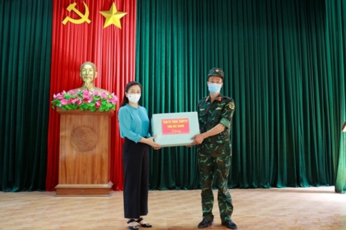 值此之际,黎氏秋红同志向在北江疫区执行任务的干部和战士赠送礼物。
