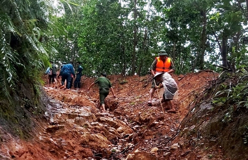 明隆县民兵在广义省明隆县隆门乡Lang Reng 村克服山体滑坡影响 (图片来源:人民军队报)