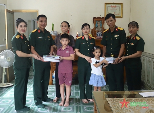 第一军区参谋部20号特工营干部人员向裴文金烈士妻子—阮氏生职业军人中尉赠送礼物(图片来源:人民军队报) |