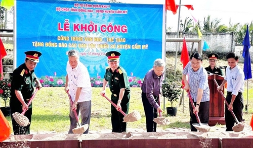 向同奈省锦美县少数民族同胞提供文化体育工程的建设经费(图片来源:人民军队报) |