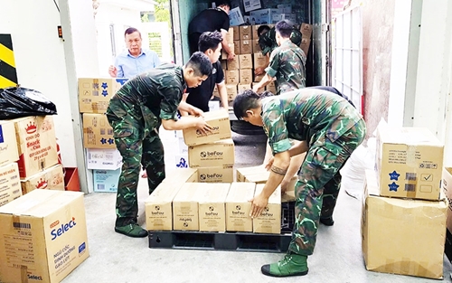 胡志明市武装力量把救灾物资运送到灾区(图片来源:人民军队报) |