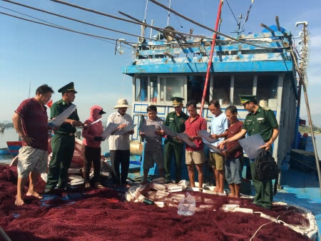 奇河港口边防屯官兵们为渔民做好法律普及宣传工作(图片来源:tapchiqptd.vn) |