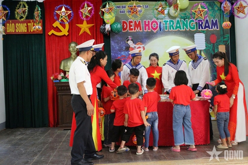 人民军队:在全国各地洋溢着中秋节欢乐气氛之际,10月4日晚,在长沙岛、双子西岛、生存岛和西礁(属越南庆和省长沙特区),第146旅、第4海军区官兵与长沙特区政府共同为少年儿童举办了“中秋月圆之夜”活动。
