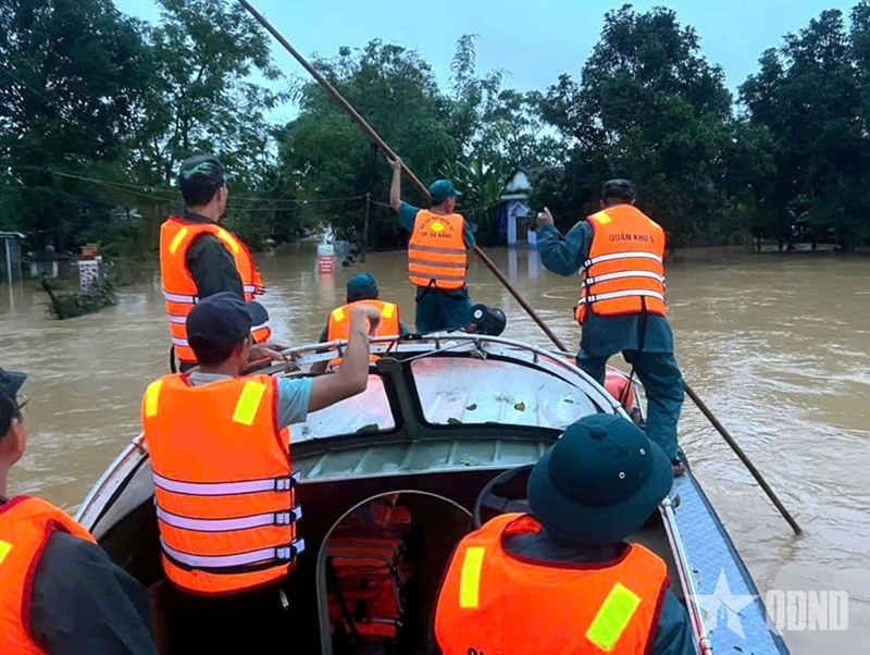 10月30日凌晨1时,岘港市奠盘北坊春艳街区洪水急速上涨,致使多栋房屋浸水至屋顶,严重威胁60户180余名居民的生命安全。接报后,岘港市军事指挥部指挥长陈友益大校立即指示调动近百名官兵连夜行动,动用ST-750、ST-660型快艇及2辆救援车辆赶赴灾区,协助深淹区群众转移。