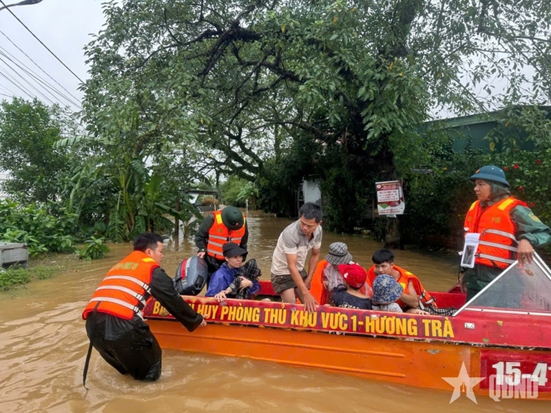 落实顺化市军事指挥部的指导,11月3日,富禄第三区守备区指挥部配合其他力量,安全转移102户共271人至安全避难处。同日下午,香茶第一区守备区指挥部动员兵力、装备,转移香茶坊第二、三、四、五、七居民区受深度洪水和隔离的多户家庭撤出被淹地区。
