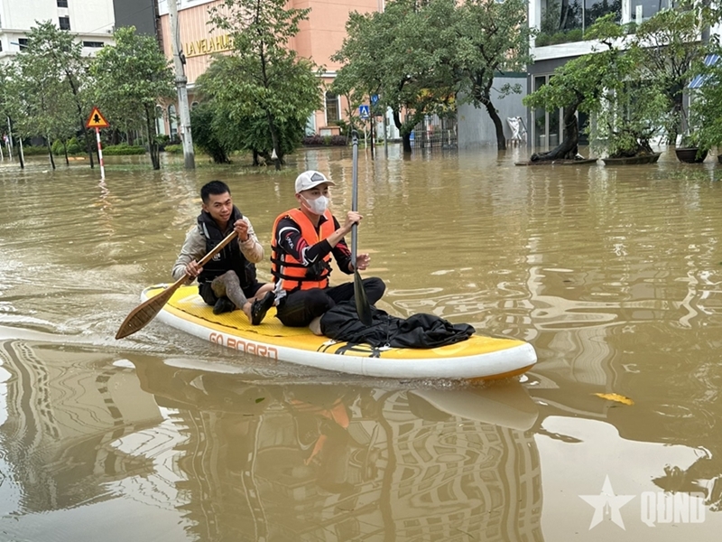 顺化市阳奴坊军事指挥部指挥员阮玉利同志表示:“尽管强降大雨、水流湍急,但民兵力量仍及时协助转运13名病患前往医院和医疗机构救治。目前,官兵们仍坚守驻地,继续协助人民群众渡过难关。”