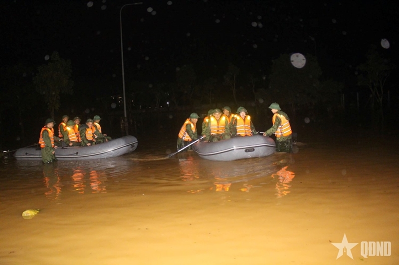 当晚,尽管洪水有所下降,但仍有大量低洼地区家庭需要粮食、食品与饮用水援助。夜色中,顺化市部队与民兵继续机动前往重灾地区救助民众。