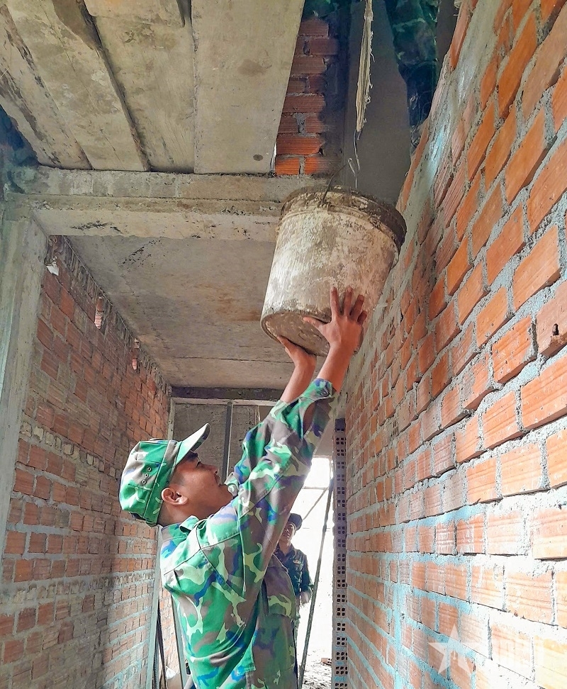 据2师副师长兼参谋长阮龙网上校透露,为洪涝灾区群众修建房屋是一项特别重要的政治任务,体现了部队对人民的责任和感情。因此,2师党委、指挥员已动员1000余名官兵及各类工具,参加“光中战役”,神速修复并重建群众住房。在实施“光中战役”过程中,单位面临诸多困难,尤其是当地持续下雨。2师承担为人民建房、修房任务的区域包括得乐省东部6个乡,地域广阔,许多地段交通不便,建筑材料运输困难,严重影响施工进度。然而,发扬“光中战役”神速进攻的精神,2师党委、指挥部员指导各单位最大限度调动一切资源、力量和运输工具,组织三班四组轮换施工,不分昼夜工作,元旦假期也不休息,确保工程进度最快、成本最节省、质量最稳固。目前,37栋新建房屋和37栋修缮房屋已全部完工,其余55栋房屋,2师确定将于1月12日前完成并交接给群众。